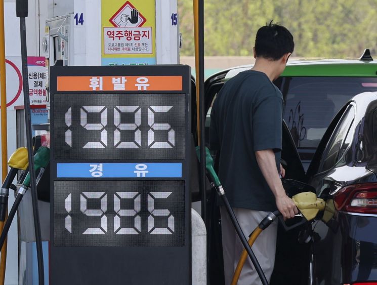 On the 19th, gasoline prices were posted in front of the Mannam Square gas station in Seoul. Photo by Yonhap News Agency