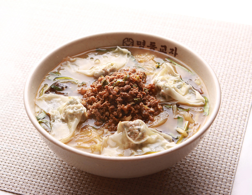 Signature dishes of Myeongdong Kyoja: knife-cut noodle soup and dumplings. Photo by Seonju Lee.