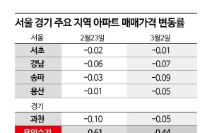 - 서울 아파트값 오름세 5주째 둔화…강남3구·용산 또 내렸다