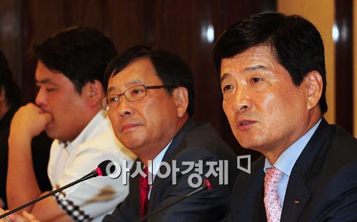 [아시아경제 윤동주 기자] 29일 서울 중구 소공동 조선호텔에서 남상태 대우조선해양 대표이사가 기자간담회를 갖고 있다.