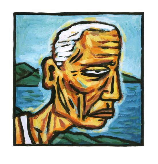 영감의 밀랍처럼 굳어져 있었고, 눈꺼풀이 반쯤 덮고 있는 눈은 텅 빈 것 같기도 했고 무언가를 쏘아보는 것 같기도 했다. 가까이에서 보니 오른 쪽 뺨에 깊은 흉터 자국 같은 게 있었다. 처음 경로잔치에 나타났을 때 그대로 런닝에 반바지 차림이었다.