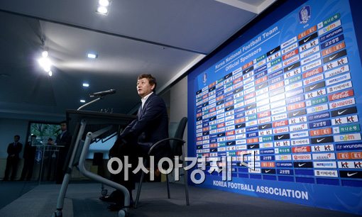 [아시아경제 김현민 기자] 인천아시안게임 남자축구 국가대표팀 이광종 감독이 14일 서울 신문로 축구회관에서 기자회견을 갖고 대표팀 명단을 발표하고 있다.