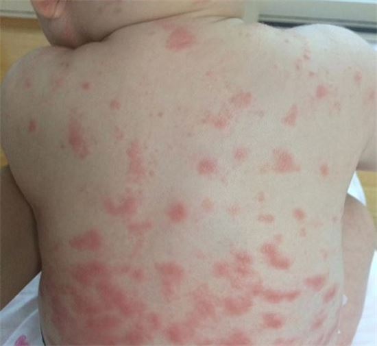 소셜네트워크서비스(SNS) 인스타그램에 올라온 피해 아이의 등. '보니코리아 에어매트'를 장기간 사용한 이 아이는 수개월째 원인 모르는 피부 발진에 고통스러워 하고 있다. (인스타그램 캡처)