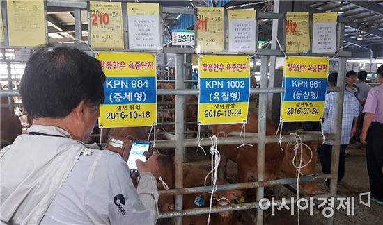 [아시아경제 노해섭 기자]장흥축협 가축시장의 혈통우 경매에서 지난 28일 한우 육종단지에서 생산한 육성우(암,12개월령)가 출품된 38두 가운데 최고가인 395만원에 낙찰되어 화제다.
