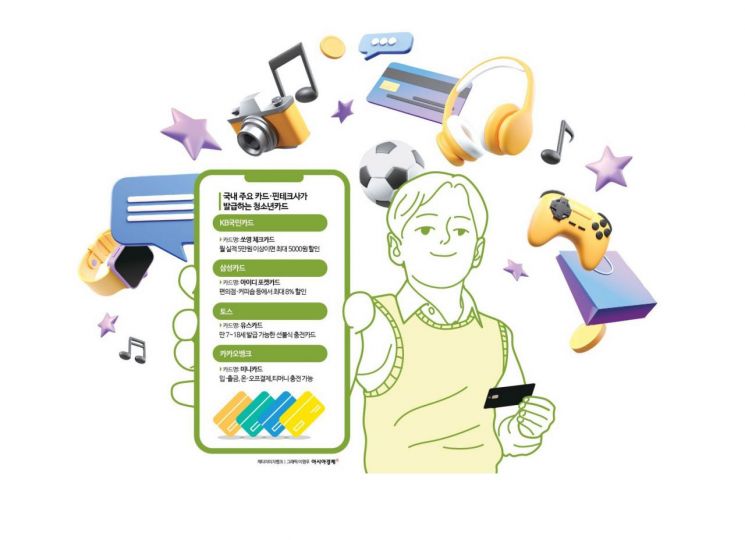 KB국민카드의 '쏘영 체크카드'는 할인 혜택이 좋다. 월 실적이 5만원 이상이면 최대 5000원 할인을 받을 수 있다. 스터디카페·문구점·편의점 등 10대가 주로 이용하는 곳에서 할인 적용이 가능하다. 청소년용 신용카드로는 삼성카드의 '아이디 포켓카드'가 인기다. 부모의 신용카드와 연계해 편의점·커피숍 등에서 최대 8% 할인 혜택을 받을 수 있다. 기본 월 이용한도는 10만원이지만 부모가 원하면 50만원까지 조정 가능하다.