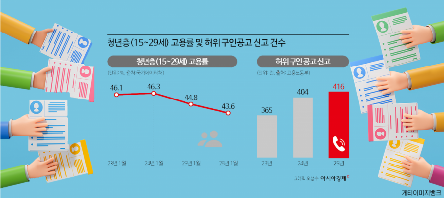17일 고용노동부에 따르면 '거짓 구인공고' 관련 신고는 2023년 365건, 2024년 404건, 2025년 416건으로 늘고 있다. 올해 1분기(1~3월) 청년 실업률은 7.4%로, 2021년 이후 가장 높았다. 취업난은 해소되지 않고 있지만, 구직자를 기만하는 거짓 구인공고는 늘어나고 있는 것이다.